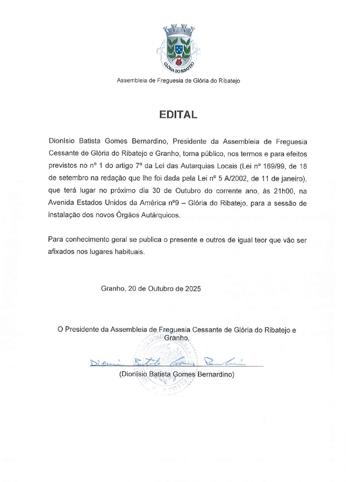 Sessão Instalação de Novos Órgãos Autárquicos - Glória do Ribatejo
