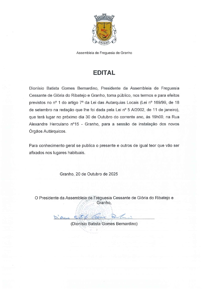 Sessão Instalação de Novos Órgãos Autárquicos - Granho